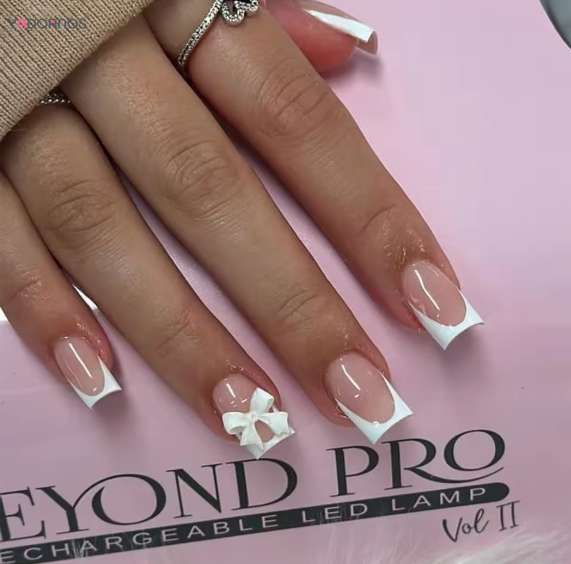 Une french délicate et raffinée, sublimée par un petit nœud pour une touche ultra féminine.