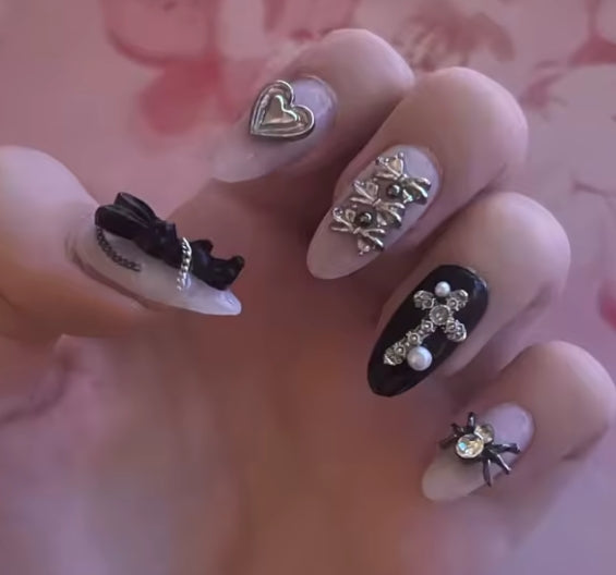 Un nail art sombre et intense, aux inspirations gothiques.